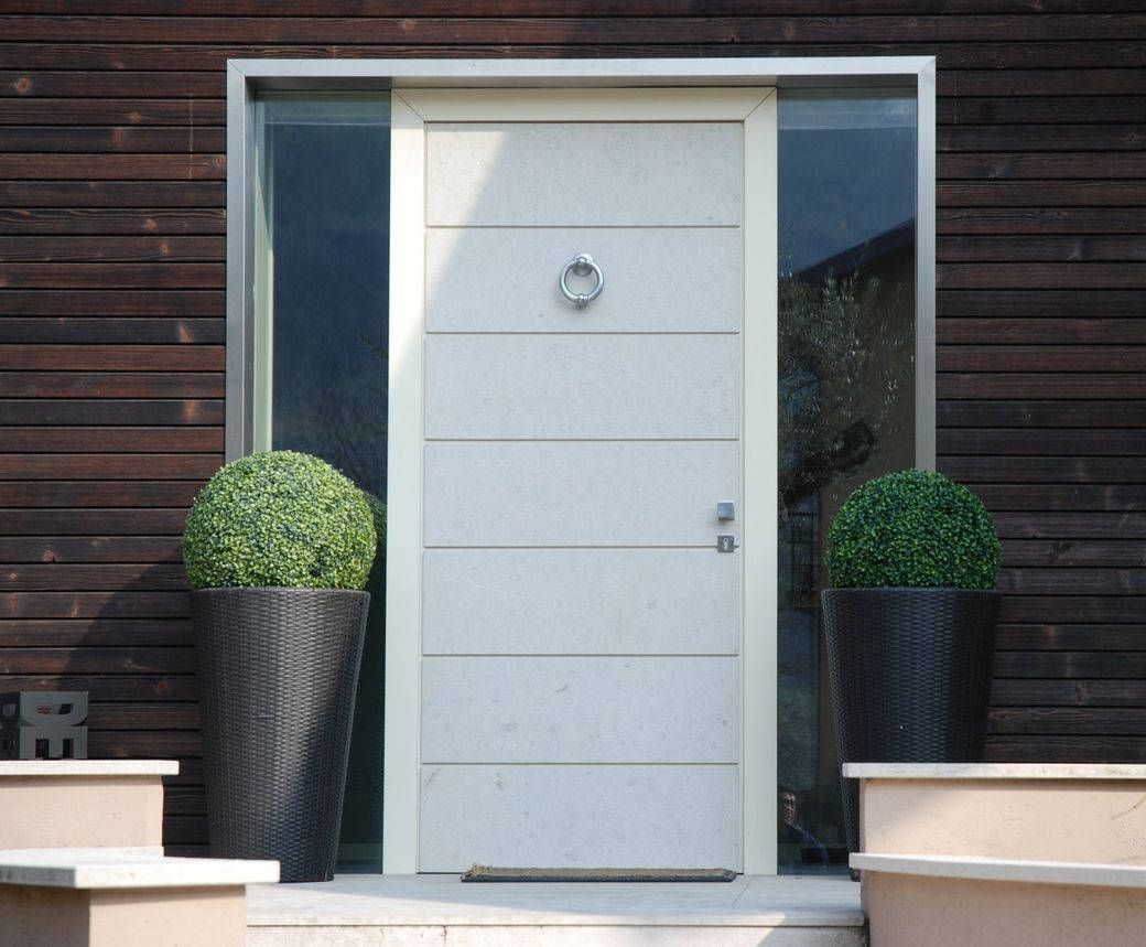 I portoni sono disponibili nelle versioni in legno e legno-alluminio, oltre a una vasta gamma di portoni blindati con vari rivestimenti consultabili a catalogo.